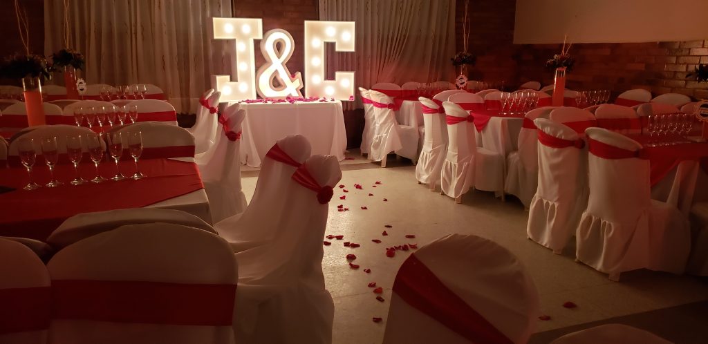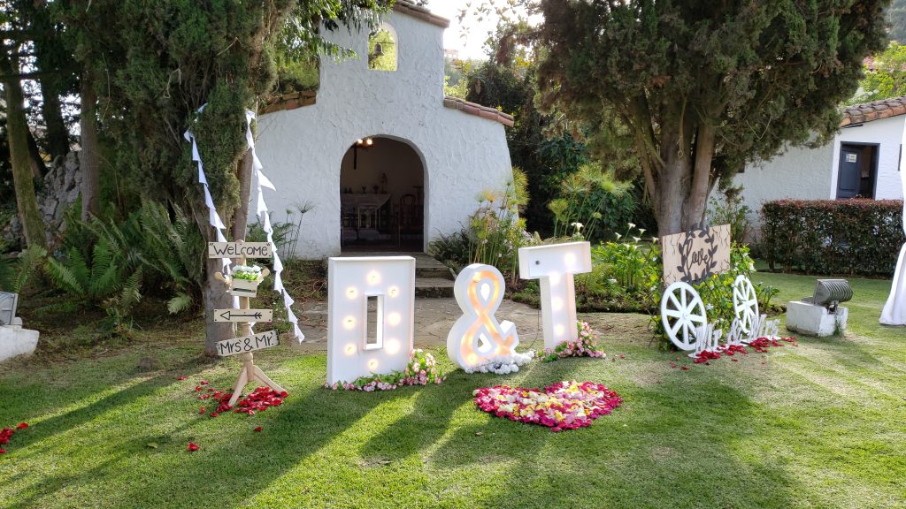 - Letras gigantes iluminadas con luz calidad en tecnología led con bombillos tipo pimpón (iniciales de los novios, LOVE, AMOR, contamos con un abecedario completo para tu boda.